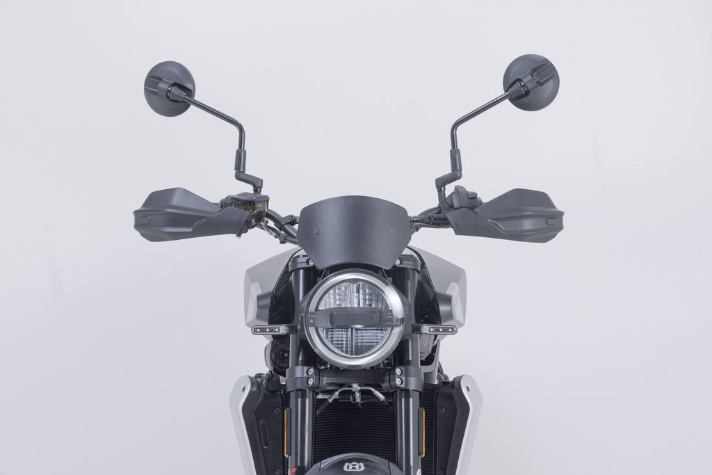 Whether on the road or off-road: The Adventure handguard kit protects the handlebar of your bike in the event of a fall and your hands from the elements as well as stone chips and branches. The basis is a sturdy aluminum bracket to which the Adventure handguard shells are attached. The impact-resistant plastic of the shells is flexible and offers the best protection against wind and weather. When driving off-road, your hands are protected from falling rocks and contact with branches and bushes. The elegant shells with a matt black surface ensure a distinctive look on your bike. Thanks to the closed shape of the Adventure handguards, the handlebar and hands are also covered on the sides. For even more protection, the separately available crash pad set can be attached to the handguards. The extension set, which increases the protection area of the Adventure handguards, provides more weather protection.