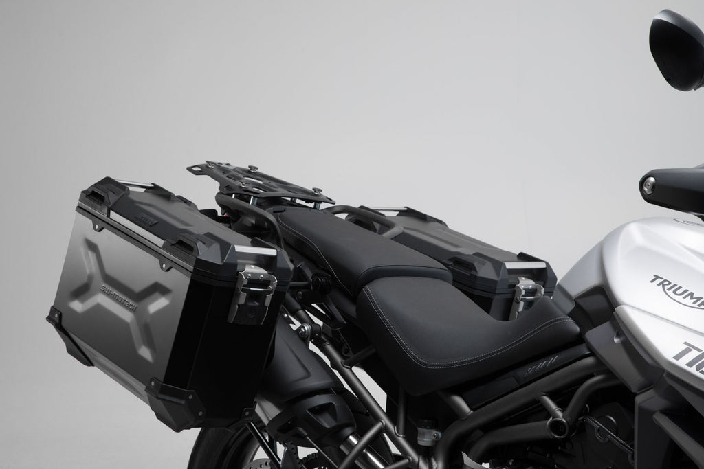 This set is the all-round, care-free pack for any tour. The water and dust-tight TRAX ADV premium aluminum case, two side cases and a top case offer your luggage the best protection. The bike-specific development of the detachable PRO side carrier and the ADVENTURE-RACK guarantee an optimal fit and secure grip for aluminium cases.