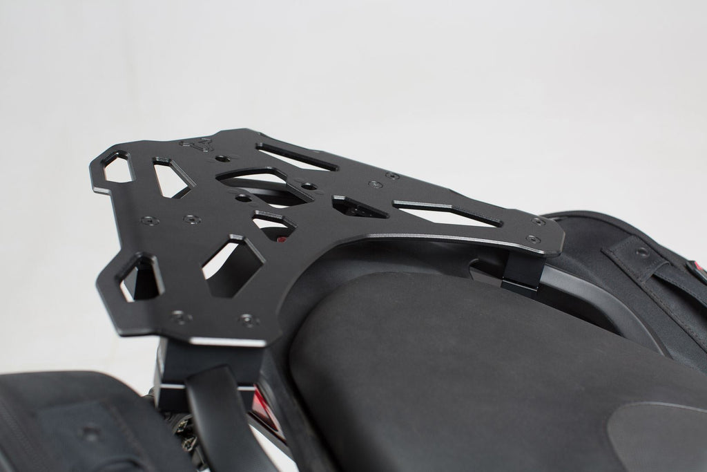The elegant and versatile ALU-RACK cuts a good figure as a rack. The aluminum all-rounder combined with an appropriate adapter plate provides secure grip for top cases from SW-MOTECH or other manufacturers, as well as SysBag 30. A simple mounting of the adapter plate on the ALU-RACK happens with just three quick-release fasteners. To secure the top case to the adapter plate in turn you just need one hand grip - thanks to the QUICK-LOCK quick-release fastener system. The ALU-RACK is also suitable for rigging tail bags, particularly in combination with the expansion that is available separately.