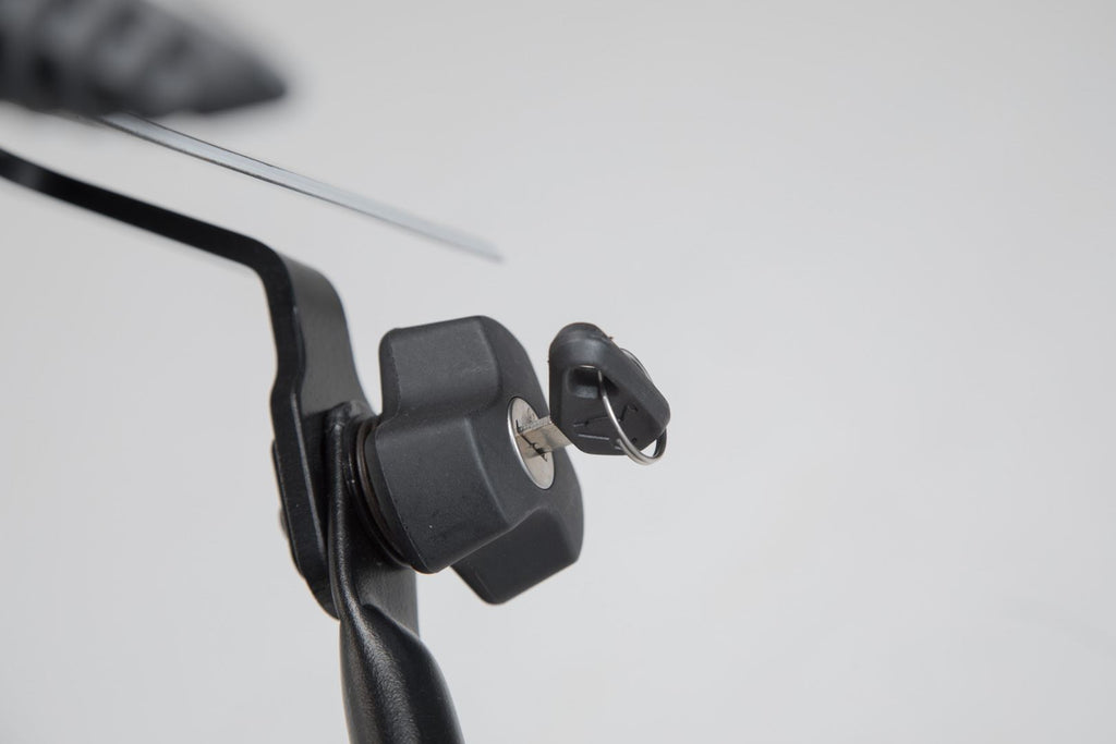 Protection against thieves: the PRO side carrier can be dismantled in a flash, thanks to the quick-release fasteners. To protect against theft, we recommend replacing a QUICK-LOCK quick-release fastener with the lockable anti-theft device. They reliably secure the PRO side carriers to your motorcycle.This set contains two anti-theft devices. The locks lock simultaneously, so you only need one lock for both sides. A spare key is also included in delivery.