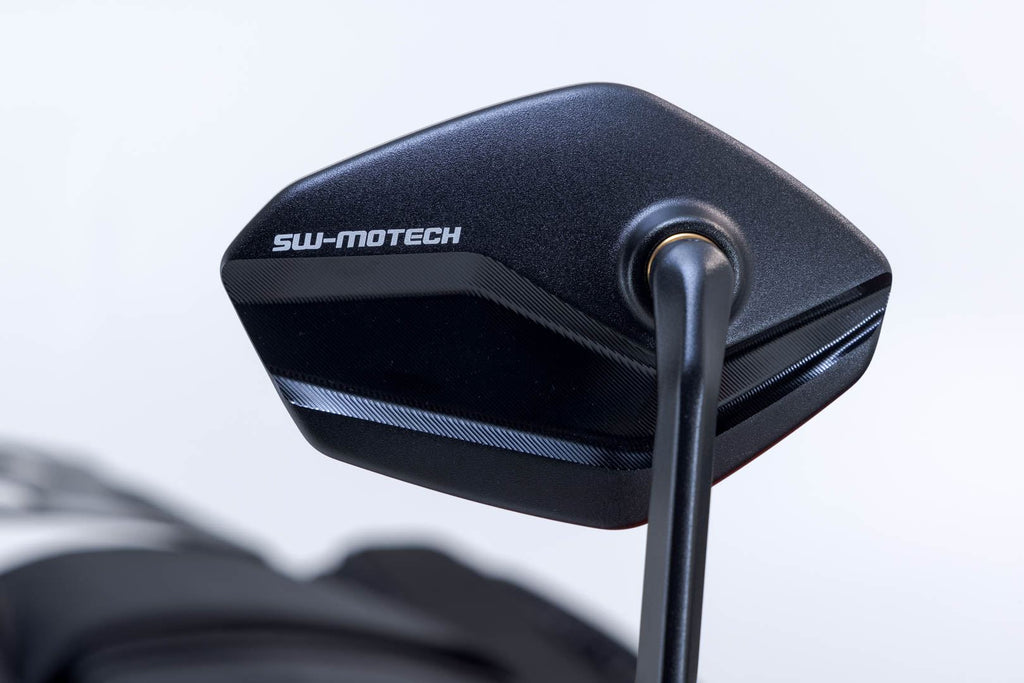 Make your motorcycle stand out with the handlebar end mirrors from SW-MOTECH. The mirrors are made from forged, milled and black anodized aluminum and feature engraved logo details. Thus, they add a robust yet elegant touch to your handlebars.