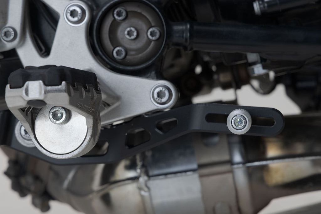 The adjustable brake pedal made of high-quality milled aluminum with HART-COAT® finish allows for optimized handling and control of the brake. The length of the SW-MOTECH brake pedal can be adjusted by 5 cm, so it suits every foot and every driving style. The tread pattern increases grip and provides improved stability for sporty driving and longer tours. With the Adventure tread (sold separately) you can improve brake pedal handling, especially during offroad driving while standing.