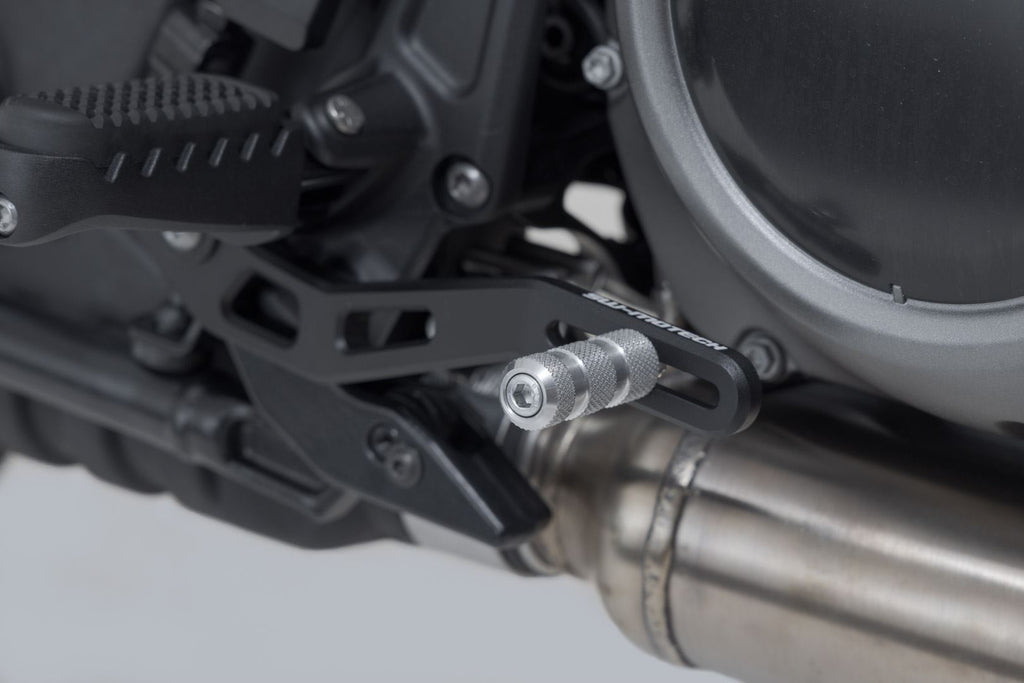 The adjustable brake pedal made of high-quality milled aluminum with HART-COAT® finish allows for optimized handling and control of the brake. The length of the SW-MOTECH brake pedal can be adjusted by 5 cm, so it suits every foot and every driving style. The tread pattern increases grip and provides improved stability for sporty driving and longer tours. With the Adventure tread (sold separately) you can improve brake pedal handling, especially during offroad driving while standing.