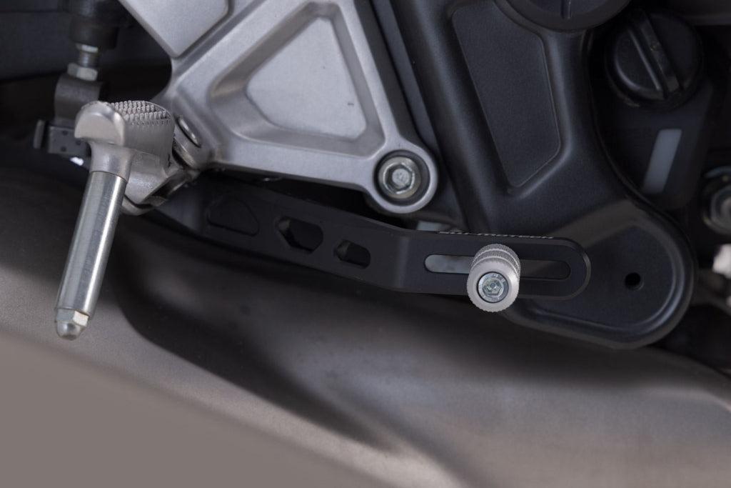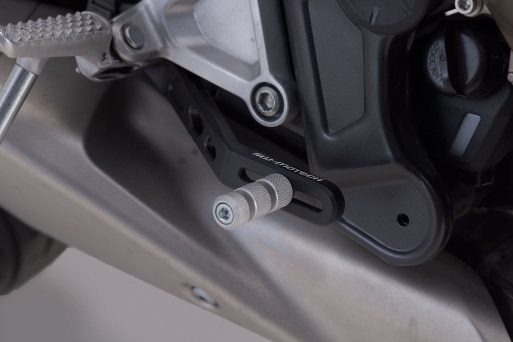 The adjustable brake pedal made of high-quality milled aluminum with HART-COAT® finish allows for optimized handling and control of the brake. The length of the SW-MOTECH brake pedal can be adjusted by 5 cm, so it suits every foot and every driving style. The tread pattern increases grip and provides improved stability for sporty driving and longer tours. With the Adventure tread (sold separately) you can improve brake pedal handling, especially during offroad driving while standing.