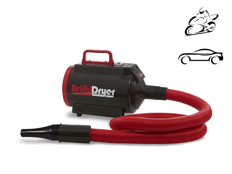 The MD 1900+ Bruhl Dryer is similar to the MD1400, but with the added benefit of an additional 500W heat element, which heats up the air as it is blasted through the turbine. It’s the ideal dryer for a medium to large motorcycle or car.
