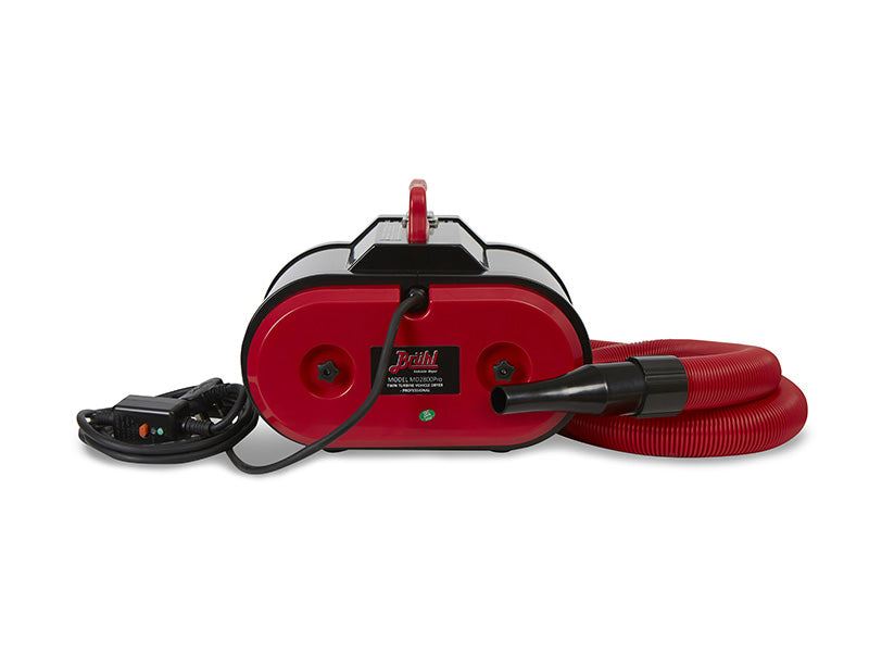 The twin turbine MD2800PRO Bruhl Dryer packs double the air blast of the MD1400, and the combined power of both turbines working side by side means the air jetting out of the dryer’s hose is naturally heated. This powerful dryer is ideal for a larger motorcycle, car, caravan or trailer.
