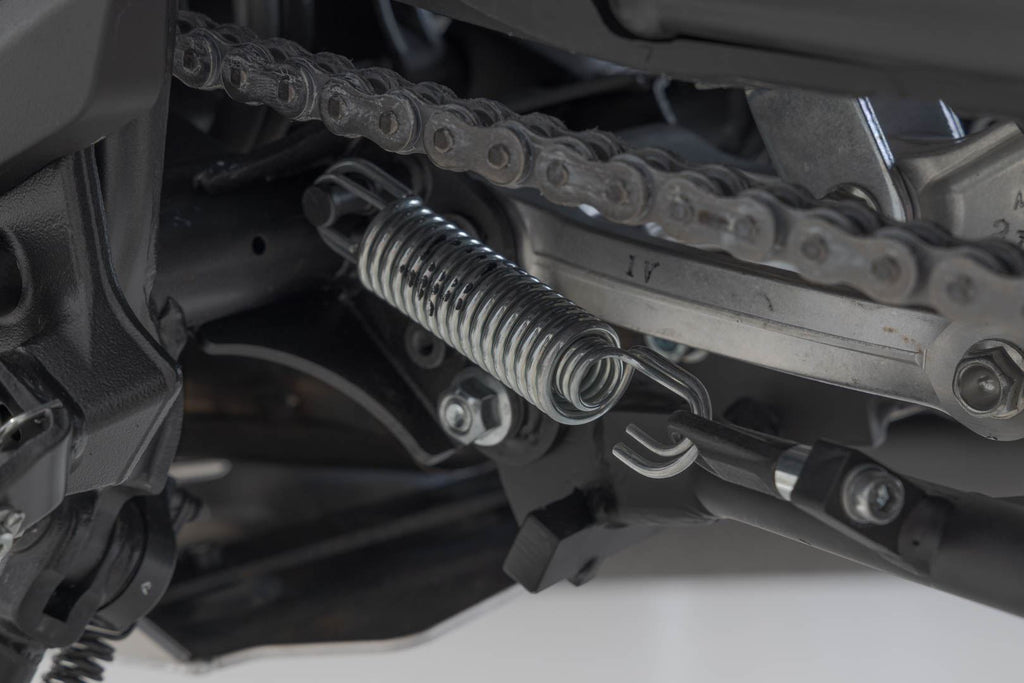 Thanks to new technology, the Honda XL Transalp centerstand can now be mounted effortlessly: the spring is hooked in loosely and tightened with a screw.