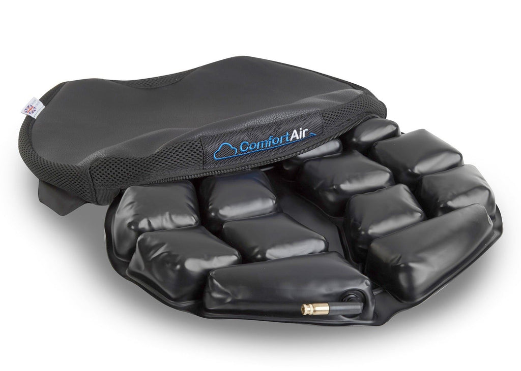 The innovative ComfortAir Seat Cushion is an easy-to-install motorcycle seat air floatation cushion that offers next-level comfort, however long or bumpy your journey. It uses medically proven air floatation technology to distribute your weight and pressure over the entire motorcycle seat, reducing the ‘hot spots’ that cause heat and pain and can create a distraction. The ComfortAir’s cutting edge air floatation cells also work as mini shock absorbers, reducing vibration and the resultant sensation of a ‘numb-bum’.