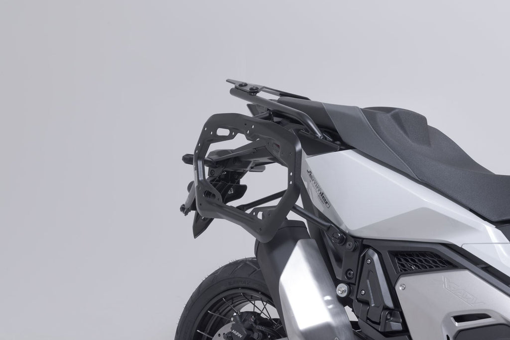 With this complete system, you get all the components you need to start your next motorcycle tour with the Honda X-ADV and DUSC: two robust DUSC hard cases, two removable PRO side carriers, an attachment kit and a lock set that can be operated with the same key. The bike-specific carriers and size of the cases are designed to perfectly match the shape of the tail as well as the motorcycle's exhaust system.