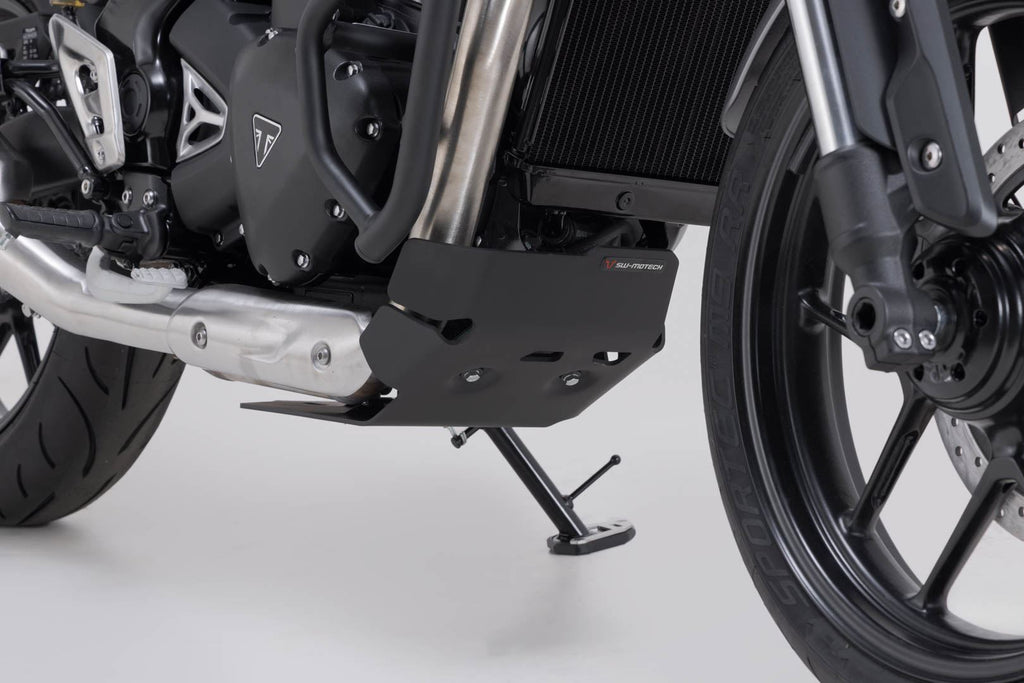 Additional protection against rocks and contact with the ground for the engine: the high-quality, aluminium alloy engine guard shows what it's capable of off the street, but provides extra safety and an individualized look on the streets, too. State-of-the-art production gives these bike-specific protectors a secure fit. The installation on frame mounting points lends additional stability and allows for easy installation.