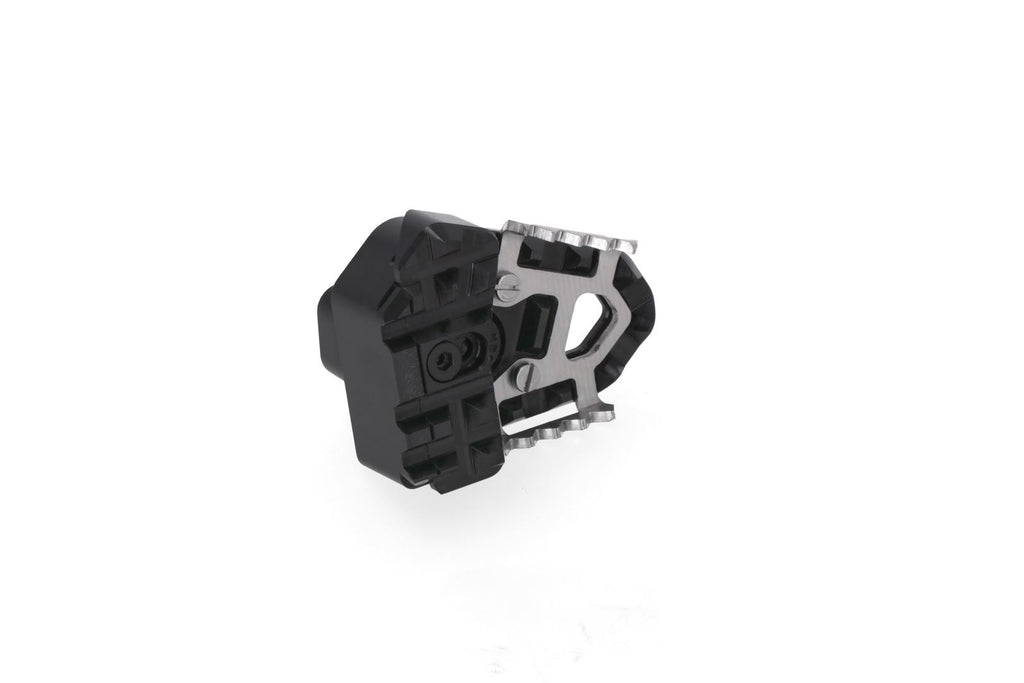 Is your original footrest impossible to position comfortably? Then the EVO footrest kit from SW-MOTECH is the perfect solution for you. This sophisticated system, consisting of rotating elements with firmly interlocking teeth, gives you 36 options for positioning. The position of the footrest can be adjusted so that it's lower or moved forwards or backwards as well as adjusted in terms of its angle to suit your individual needs. The bike-specific joint adapters are simply mounted on to the original parts of the footrest holder. We'll show you how this works in the mounting instructions.
