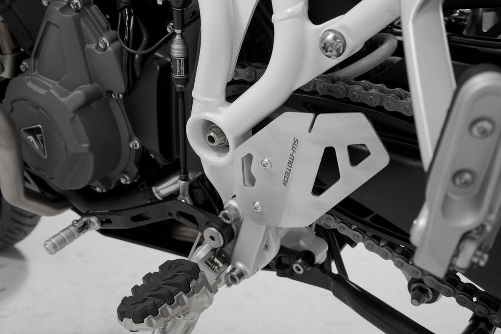 SW-MOTECH manufactures these extensions from high-strength milled aluminum alloy; they feature a black anodized surface and a stainless steel step plate. For optimal ergonomic adjustment, the increase in the brake pedal step can be adjusted in two stages of 22 or 27 millimeters.