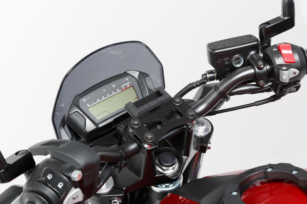 - Retaining plate with universal drill-hole pattern provides secure hold for the usual GPS models and Navi Case Pro device cases or hardcases from SW-MOTECH.