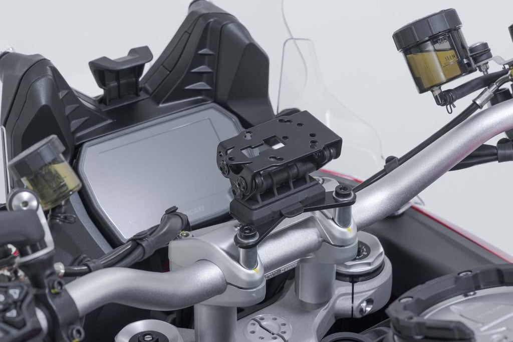 - Retaining plate with universal drill-hole pattern provides secure hold for the usual GPS models and Navi Case Pro device cases or hardcases from SW-MOTECH.