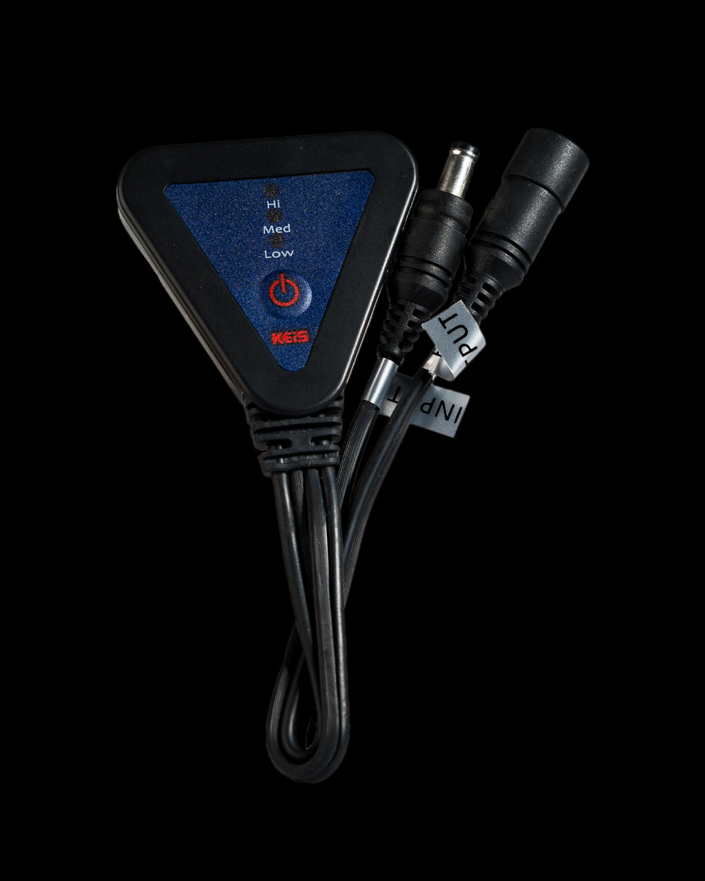 Please Note: The Keis Heat Power Controller cannot be used in series with any other integral controllers (as in the Keis heated motorcycle gloves) or external controller.