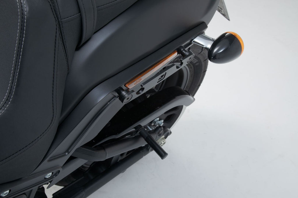 The bike-specific bag carrier can be easily and quickly mounted on to original attachment points on the fender strut. The quick lock system allows LH Legend Gear side bags to be attached and removed in just a few easy hand movements, without the driver foregoing reliable bag fastening.