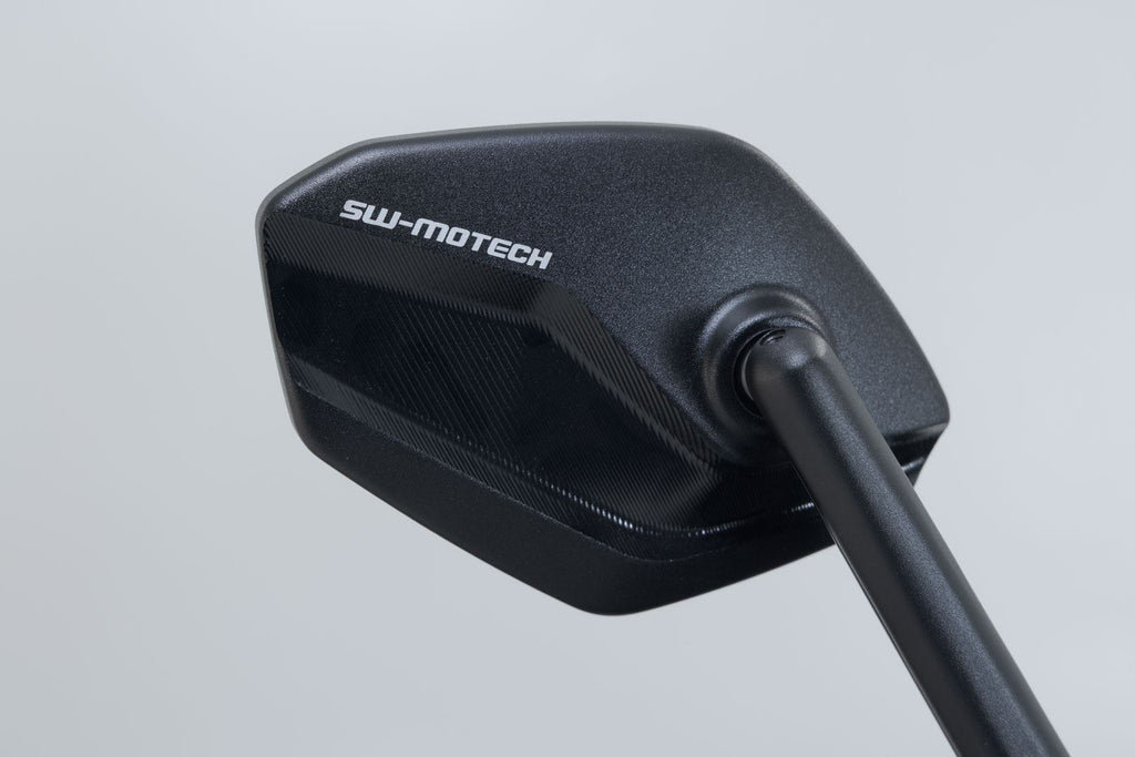 SW-MOTECH manufactures the adjustable mirrors in a modern and flat design from high-quality forged and black anodised aluminium. The mirror arms consist of continuously adjustable elements and can each be extended by 30 millimetres. This allows the height and length of the mirrors to be adjusted to the requirements of the respective pilot.