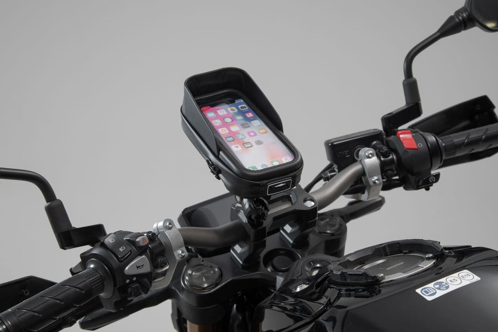 The Phone Case impresses with its practical features for smartphones being used as GPS devices: the membrane cover with sun visor allows you to easily operate touch surfaces. Velcro® straps along the padded and splash-proof device pouch hold the hardware in place and the circumferential zipper allows for easy opening. The rubber lining keeps out moisture.