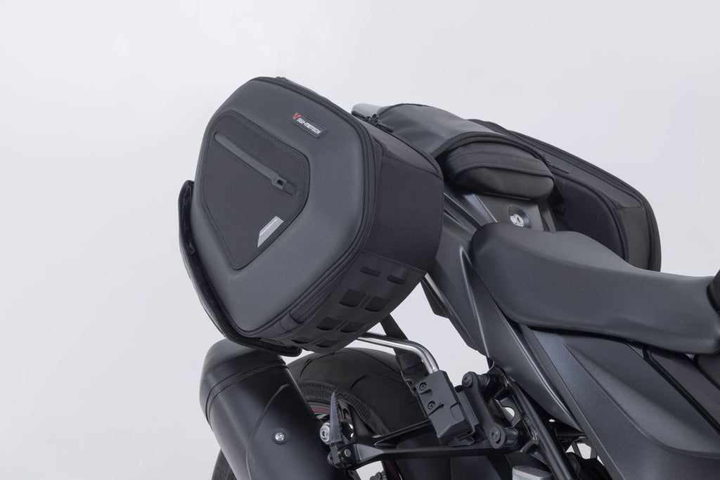 The high version of the PRO BLAZE saddlebags was specially developed for motorcycles with a high exhaust pipe. Due to the raised position, the bags are not affected by the heat emitted from the exhaust. SW-MOTECH manufactures this bag set and matching support arms for the Suzuki GSR 750 / GSX-S 750
