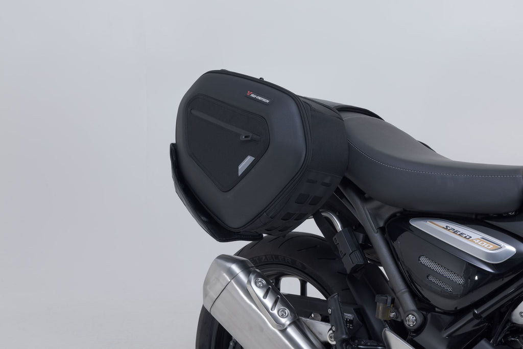 The high version of the PRO BLAZE saddlebags was specially developed for motorcycles with a high exhaust pipe. Due to the raised position, the bags are not affected by the heat emitted from the exhaust. SW-MOTECH has manufactured this bag set with matching support arms for the Triumph Speed 400 / Scrambler 400 X.
