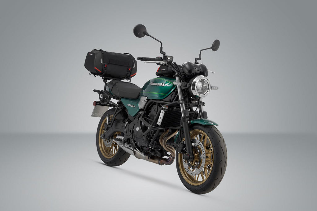 We have put together this combination of tail bag and rack to fit the Kawasaki Z650 RS. The bike-specific STREET-RACK with extension offers an ideal large contact surface for the PRO Rackpack tail bag.