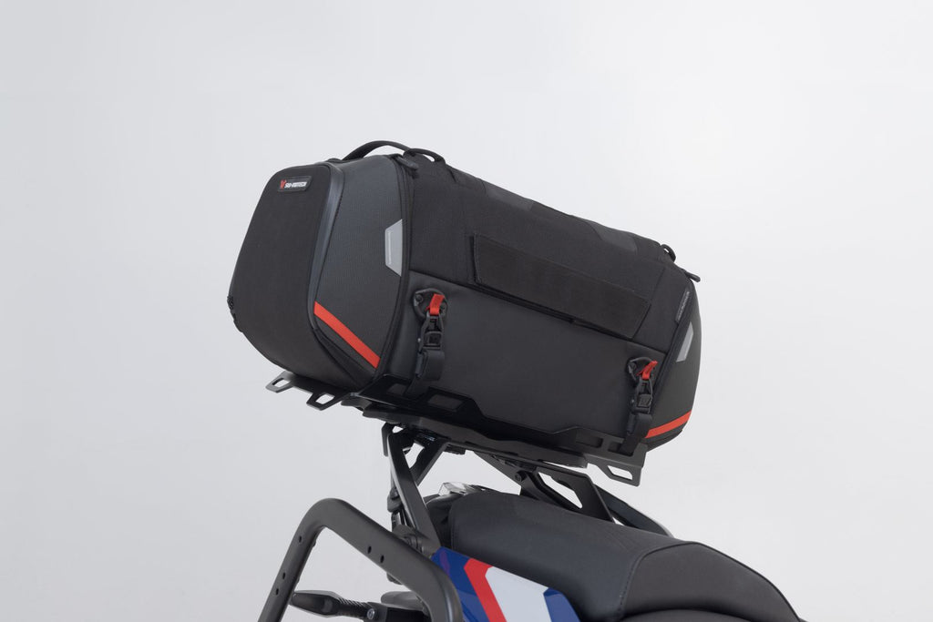 The tail bag from the PRO series is made by SW-MOTECH from indestructible 1680 D Ballistic Nylon and the rack from robust aluminum alloy. The rack is attached to resilient bike-specific mounting points on the motorcycle.