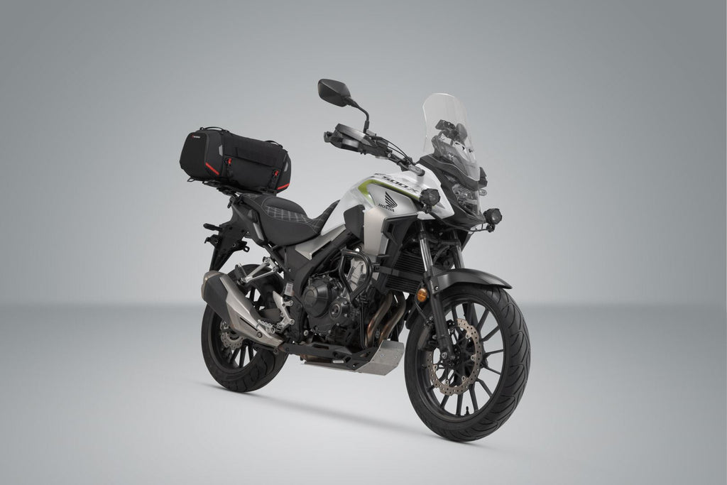 We have put together this combination of tail bag and luggage rack specifically to fit Honda bikes The bike-specific STREET-RACK with extension offers an ideal large contact surface for the PRO Rackpack tail bag.