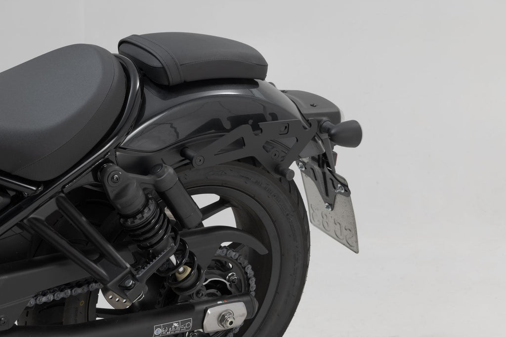 The bike-specific bag carrier can be easily and quickly mounted on to original attachment points on the fender strut. The quick lock system allows LH Legend Gear side bags to be attached and removed in just a few easy hand movements, without the driver foregoing reliable bag fastening.