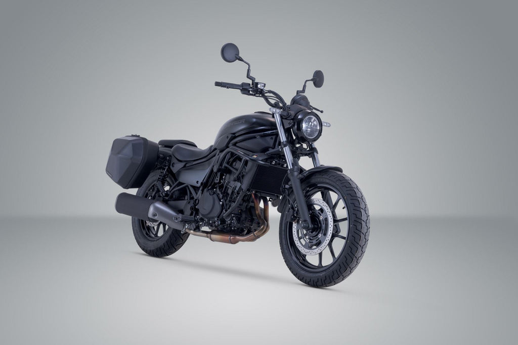 With this combination of SLC side carriers and URBAN ABS side cases, SW-MOTECH prepares the Kawasaki Eliminator 500 for those longer trips with extra luggage.