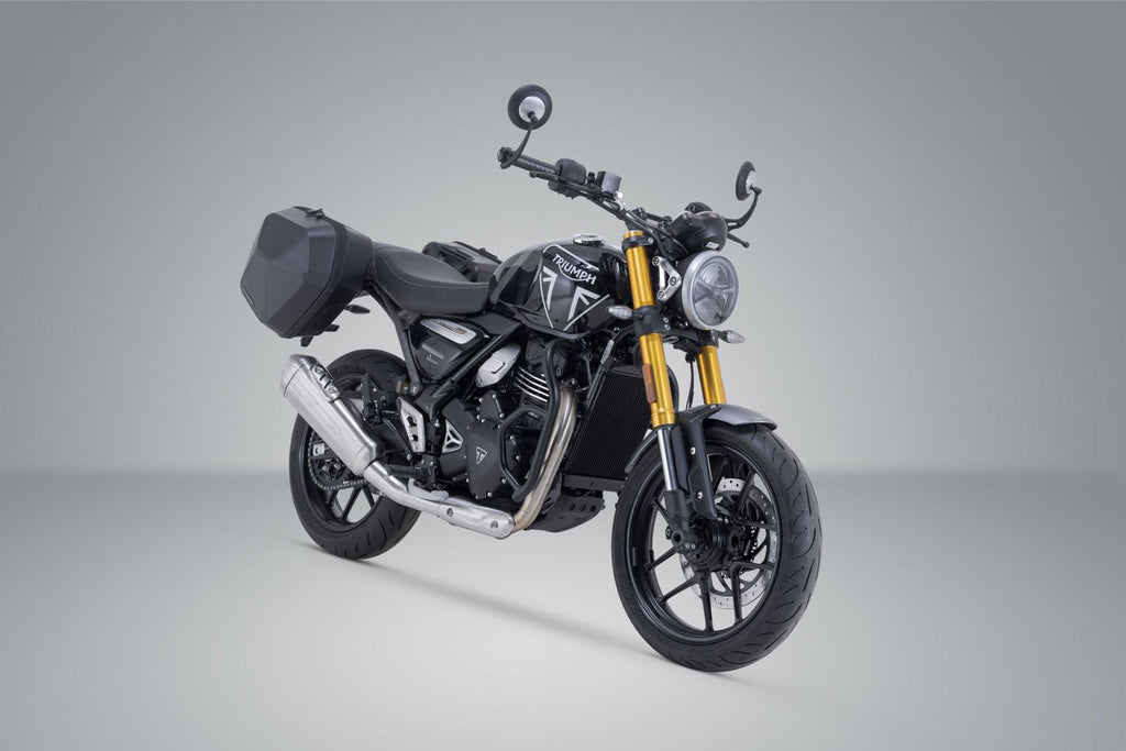 With this combination of SLC side carriers and the URBAN ABS side cases, SW-MOTECH makes the Triumph Speed 400 ready for longer trips with more luggage.