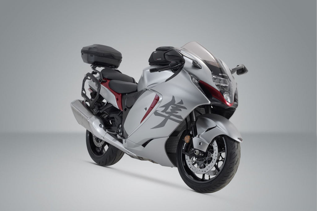 The perfect combination of top case and rack: The aerodynamic URBAN ABS top case and the sleek STREET-RACK offer a sporty solution for your luggage that is fit for everyday life at the same time.The slim STREET-RACK included in the set was specifically developed for the Suzuki GSX1300R Hayabusa. SW-MOTECH finishes the STREET-RACK with powder coated aluminum and offers the right models for numerous bikes. You simply mount the rack on your bike's original attachment points.