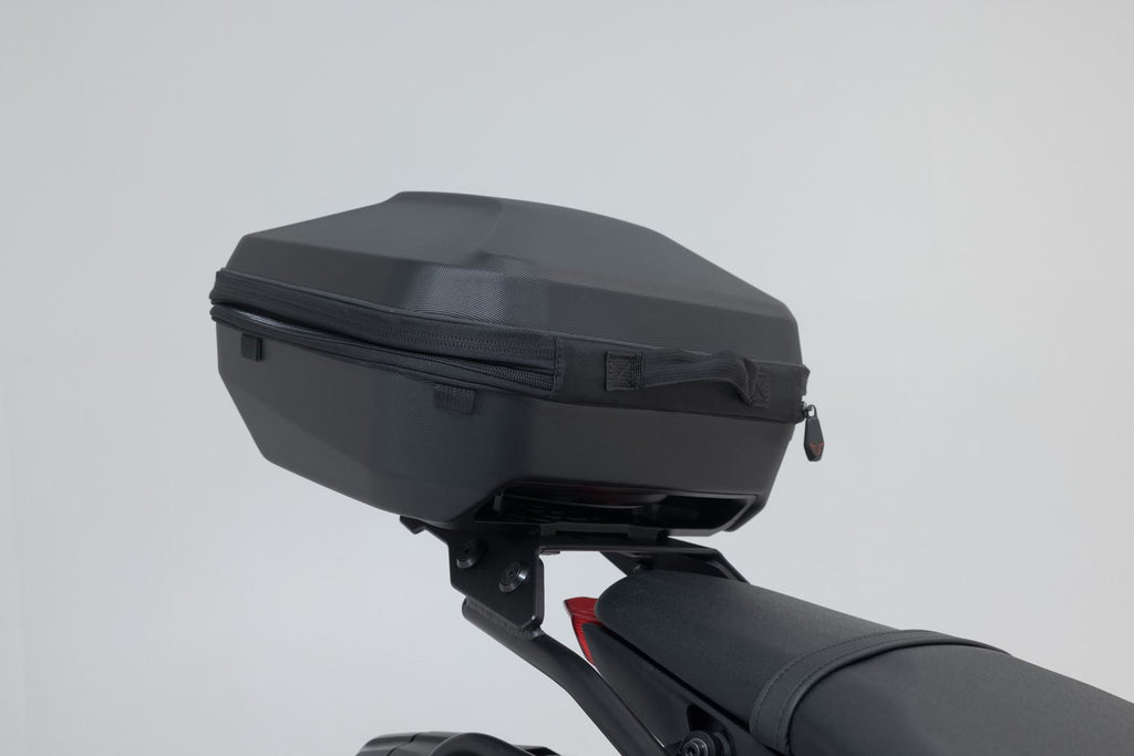 The perfect combination of top case and rack: The aerodynamic URBAN ABS top case and the sleek STREET-RACK offer a sporty solution for your luggage that is fit for everyday life at the same time.The slim STREET-RACK included in the set was made to fit the Yamaha MT-09. SW-MOTECH finishes the STREET-RACK with powder coated aluminum and offers the right models for numerous bikes. You simply mount the rack on your bike's original attachment points.